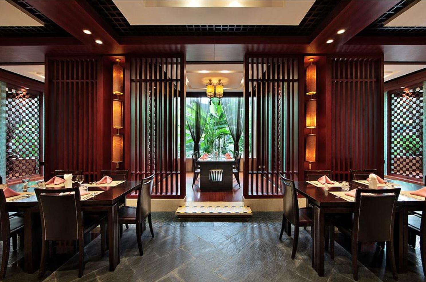 餐厅的风格是由餐具决定的,所以在装修前期酒应决定餐具、餐椅的风格。其中最容易冲突的是色彩、天花造型和墙面装饰品餐饮业务的收入是灵活的,在酒店的整体收入中占有很大的比重。因此,餐饮空间设计在酒店整体设计中占有重要的地位。高档酒店的餐厅种类很多,包括全日餐厅、中餐厅、西餐厅、特色餐厅、大宴会厅等。