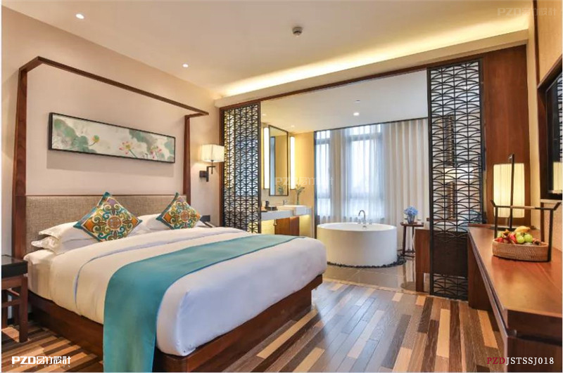 通常在中式酒店装修设计的房间里,我们常可以看见些精美的装饰物品放置于桌面上,或者摆放一套充满中式韵味的古典家具,通常这些装饰品都是用来体现中式风格的,尤其是中式精品酒店中常常以木质装修比较多,像仿古的中式屏风就常常出现于中式精品酒店设计装修之中。