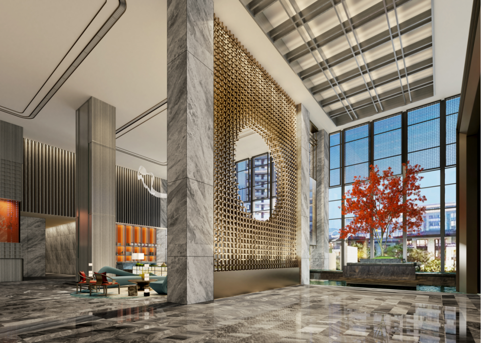 大型商务酒店咖啡厅作为商务人士洽谈沟通、临时办公及休闲放松的重要场景,设计需兼顾商务属性与舒适体验,既要契合酒店高端格调,又要满足高效办公、轻松交流的多元需求,避免过于休闲或刻板,真正打造“实用与质感并存”的空间。