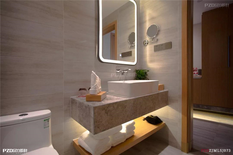 最后,酒店设计卫生间要有照明、采暖、通风设施。在采光设计中,应采用整体照明和局部照明。在通风方面,可以采用窗户进行自然通风,也可以安装排风机。采暖主要是针对冬季浴室,可安装浴吧或电暖器等设施。此外,防滑也是在装修设计中要注意的。所以防滑措施一定要做好,避免安全事故的发生,比如:防滑垫、防滑地砖等。